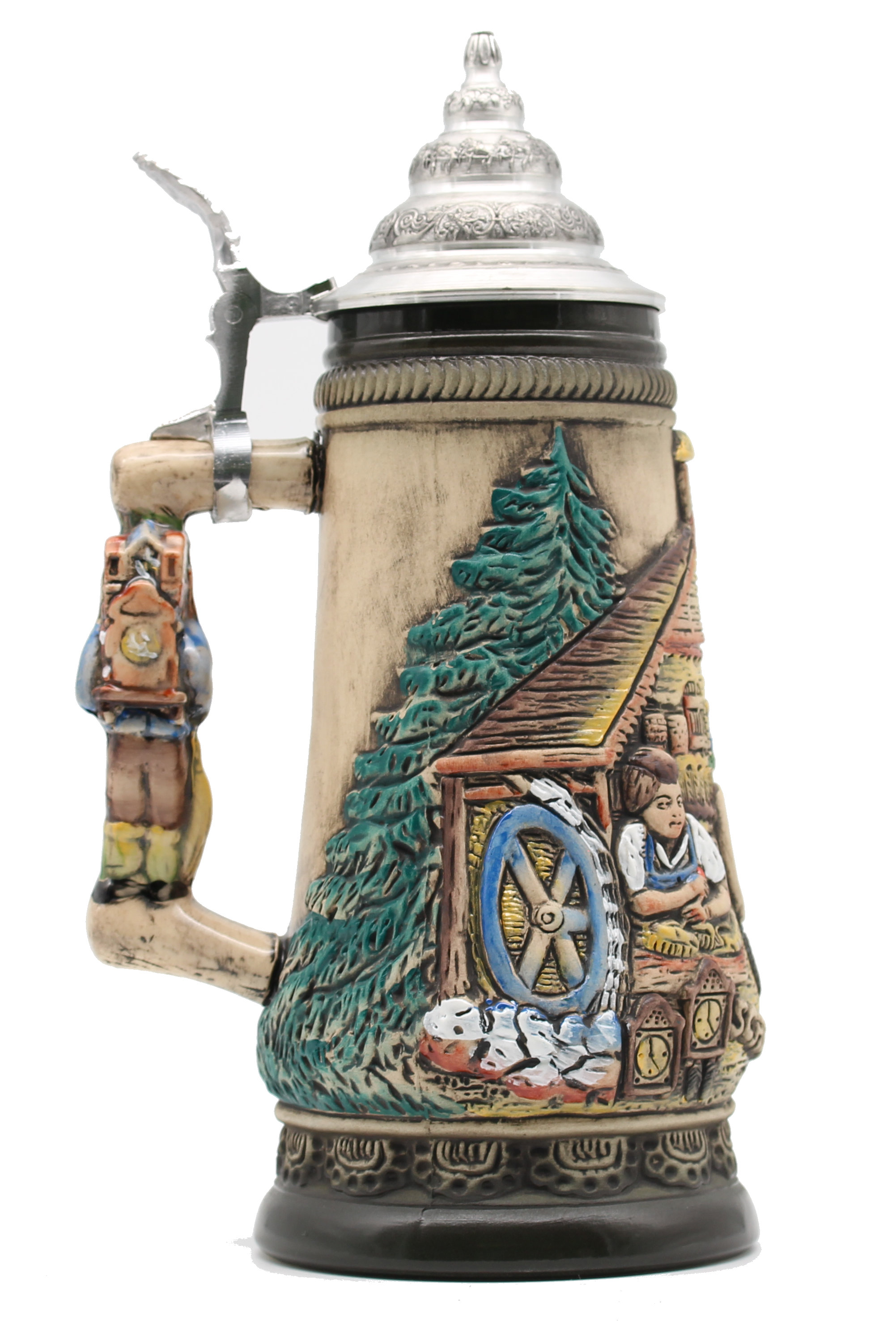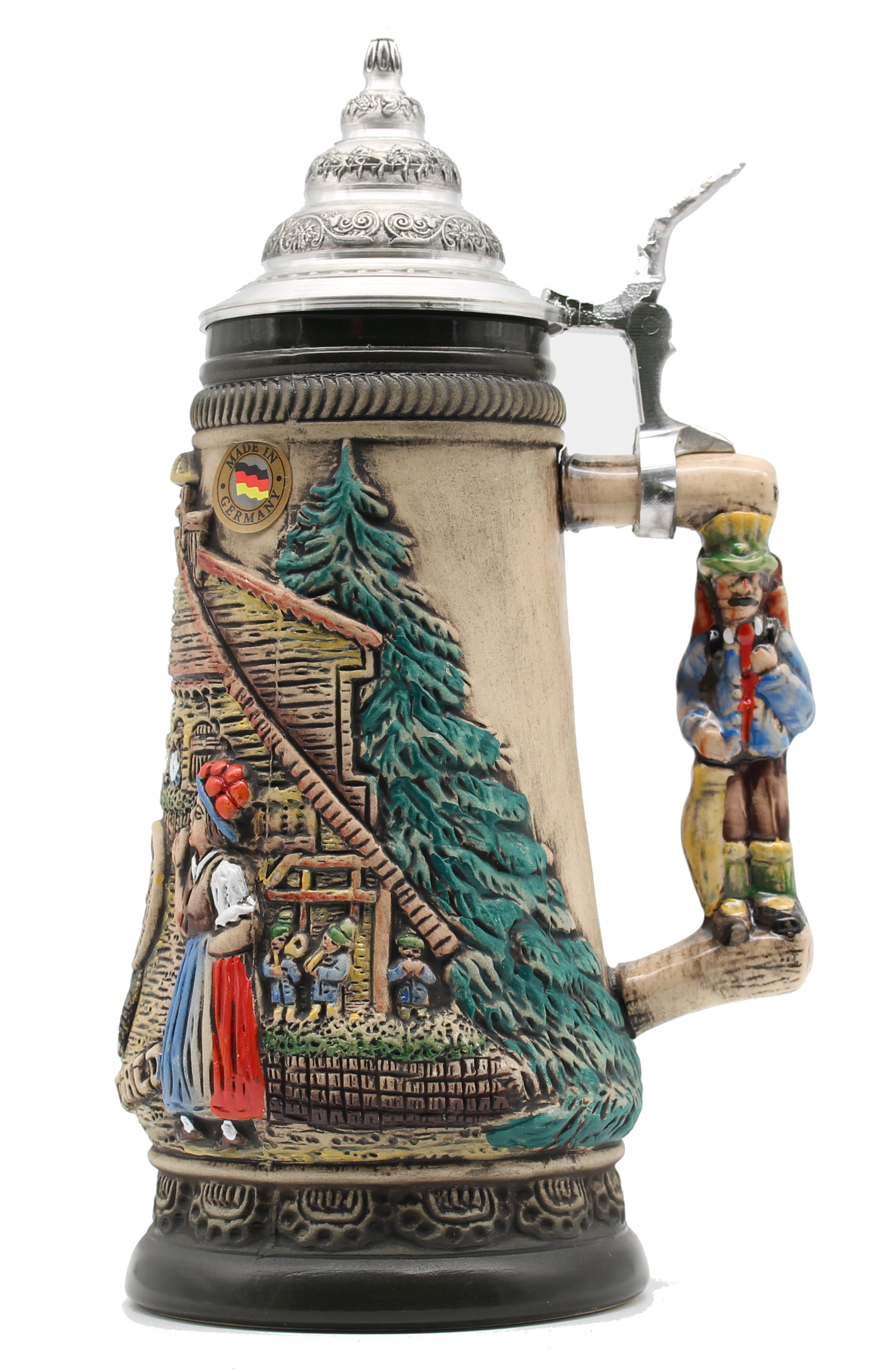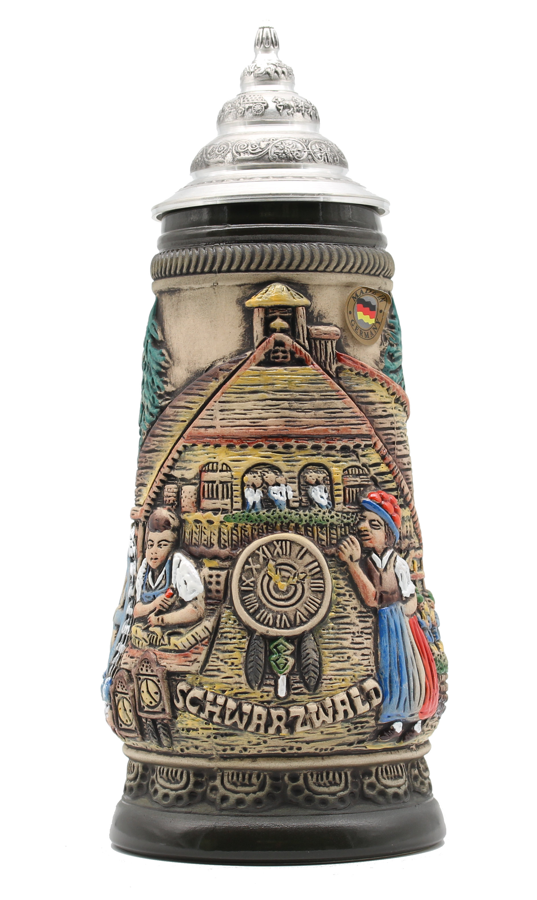 Handpainted 0,5liter Black Forest Beerstein in black with solid pewter lid.